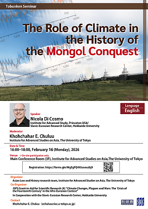 Speaker: Nicola Di Cosmo (Institute for Advanced Study, Princeton/ Slavic and Eurasian Research Center, Hokkaido University)