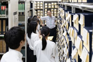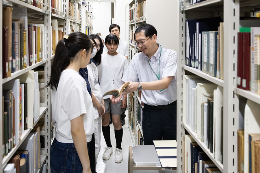 当日は、柳幹康准教授による「仏教と書籍」をテーマとした講義が行われ、引き続き図書室の書庫見学も実施されました。講義では、仏教と書物の歴史的関係や、言語・文化の伝播、書籍の形態など幅広い話題が取り上げられ、生徒の皆さんは熱心に耳を傾けていました。