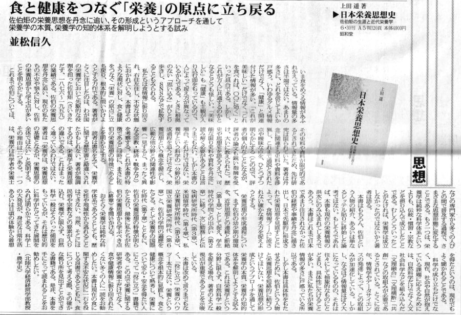 東洋文化研究所叢刊35輯として刊行された上田遥著『日本栄養思想史』(昭和堂)の書評が図書新聞(2025年11月15日)に掲載されました。評者は北陸大学の並松信久教授です。また、本書の内容をもとにした企画展「佐伯矩〜栄養学の創始者〜」が2025年12月6日(土)〜2026年3月8日(日)に愛媛人物博物館で開催されます。貴重な資料も公開されておりますので、食や健康、近代科学史にご興味のある方は是非ご覧ください。(https://www.i-manabi.jp/topics/?p=34133)