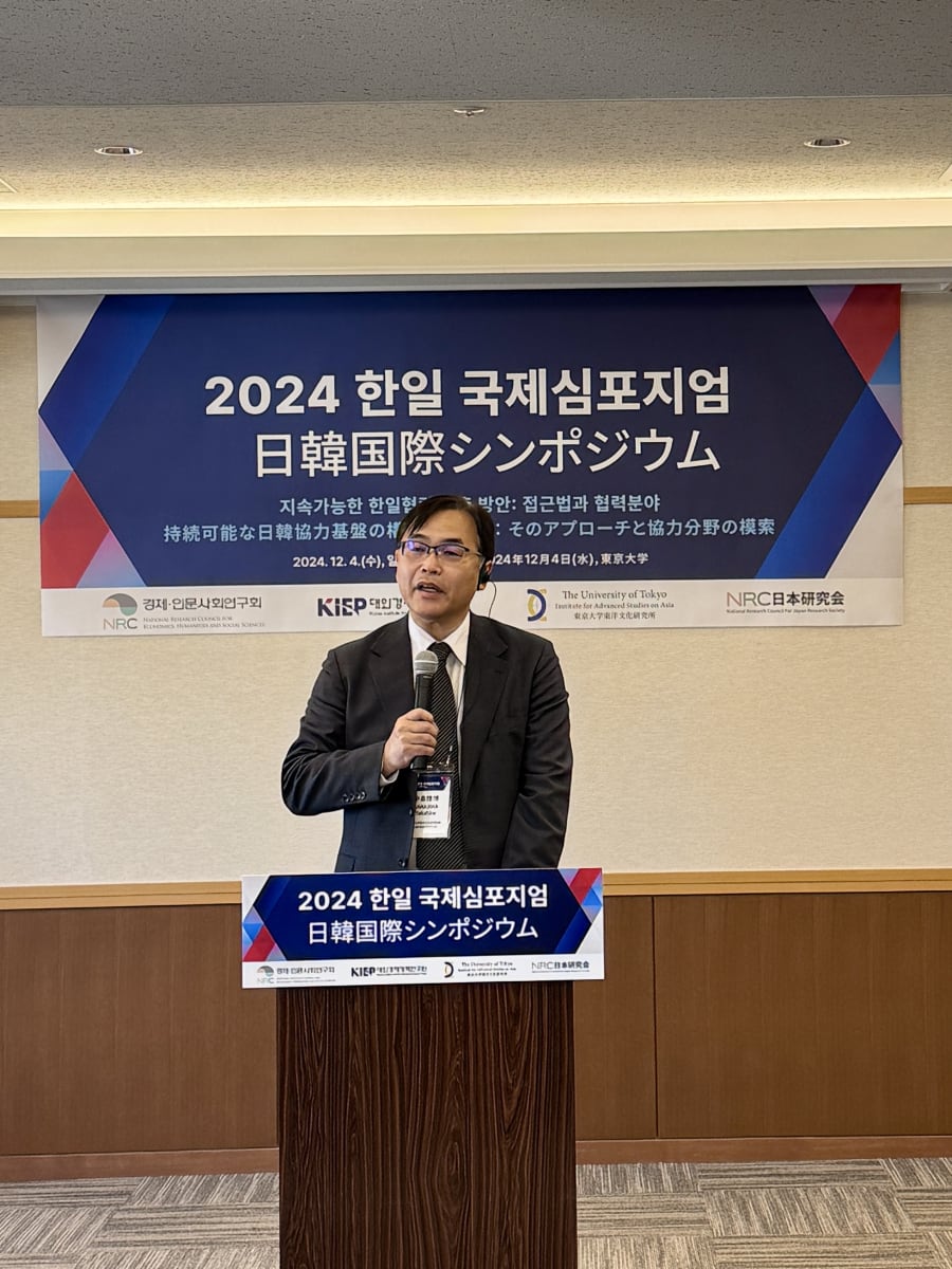 2024年12月4日(水)10時より18時まで、2024日韓国際シンポジウムが本学で開催されました。本シンポジウムは、2025年に日韓国交正常化60周年を迎えることを念頭に、「持続可能な日韓協力の基盤構築に向けて:そのアプローチと協力分野の模索」をテーマに、韓国人文社会研究会(NRC:National Research Council)が主催、東洋文化研究所と韓国対外経済政策研究院(KIEP)、NRC日本研究会が共催となり実施されました。