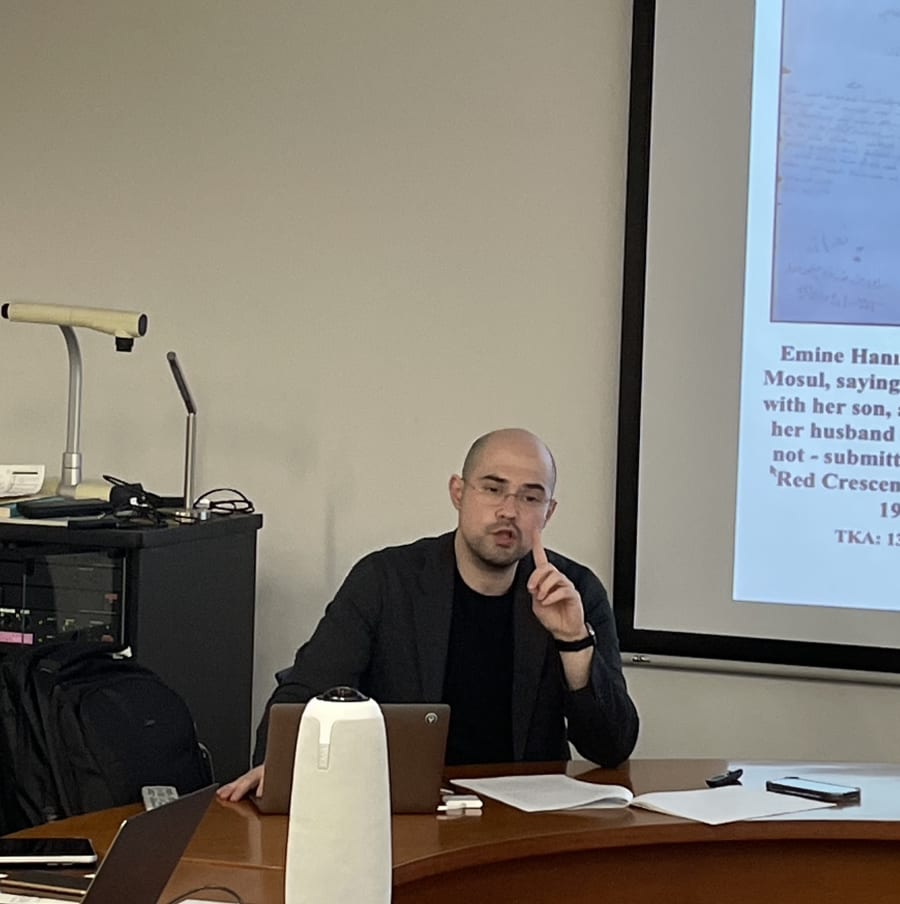 2024年3月13日、東文研セミナー "Petitions and “Individuals”: First-Person Narratives and Historical Agency at Intersections of Diplomatic, Administrative, and Legal History” が、イスラーム信頼学プロジェクト科研費学術変革領域研究(A)「イスラーム共同体の理念と国家体系」(代表:近藤信彰)と共催で開催された。今回のセミナーでは、オスマン帝国末期から第一次大戦後の中東の新しい政治体制に至る移行期を専門とするオルチュン・ジャン・オカン氏が講師として、第一次世界大戦期から戦後のオスマン帝国と中東における嘆願書に焦点を当てて講演を行った。