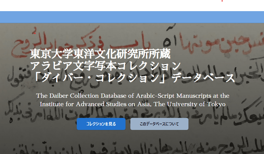 東洋文化研究所は特別貴重資料としてアラビア文字写本コレクション「ダイバー・ コレクション」を所蔵しています。これまでも全点の画像をインターネット経由で公 開し、利用者の用に供してきましたが、この度、さらに高度な活用を実現するため、 附属図書館アジア研究図書館上廣倫理財団寄付研究部門(U-PARL)および人文社会 系研究科との連携のもと、データベースを更新することといたしました。過日、2025 年6月30日に、新データベースのβ版(公開テスト版)の第一次公開を行いましたので 、皆さまにテストをお願いしたく、お知らせいたします。今回の公開では、コレクシ ョンIとIIからなるダイバー・コレクションのうちコレクションIの1番から50番までの 写本を搭載しました。今後定期的に追加、更新していく予定です。