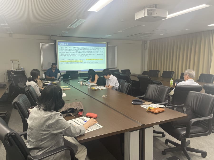 吉田敦(東洋大学)による口頭報告「中国とアフリカ諸国間の経済連携強化の現状と課題ー産油国(アンゴラ、アルジェリア)を例証としてー」、質疑